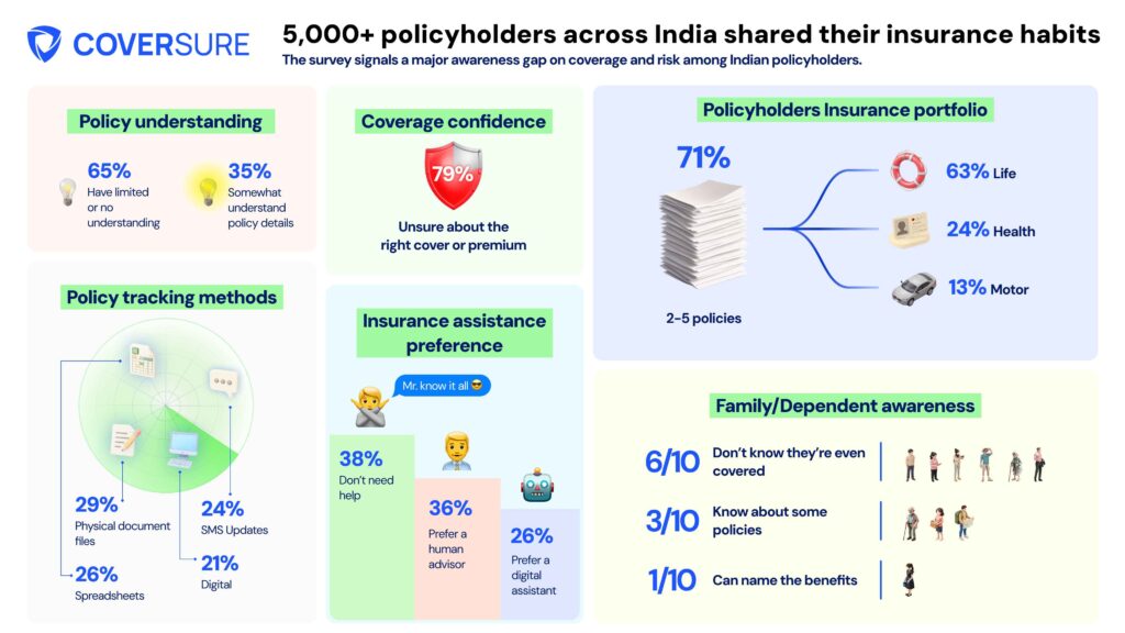 79% Indians Unsure About Adequate Insurance Coverage: A recent report by leading InsurTech firm CoverSure has revealed an alarming reality: a staggering 79% of Indian policyholders are uncertain if their insurance coverage is sufficient. Despite owning life, health, and motor insurance policies, most individuals remain unaware of what their plans actually cover. This points to a critical gap not just in financial literacy but also in the way insurance is sold and explained to consumers in India.